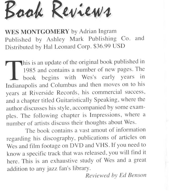 "This is an exhaustive study of Wes and a addition to any jazz fan's library." Ed Benson: Just Jazz Guitar, Feb., '09
